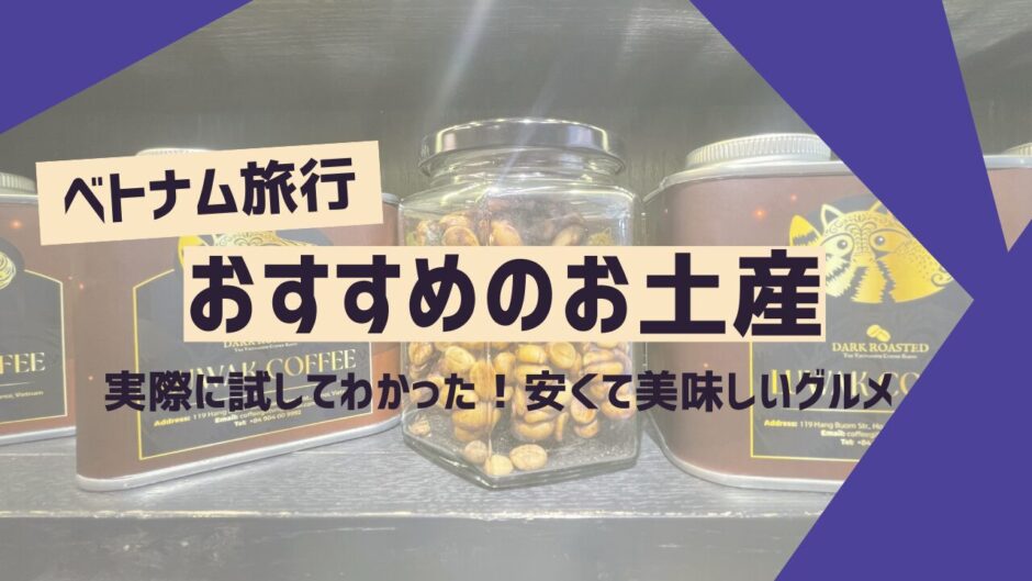 ベトナムで買えるお得に美味しいお土産をご紹介しました。お土産選びのヒントになれば幸いです。
